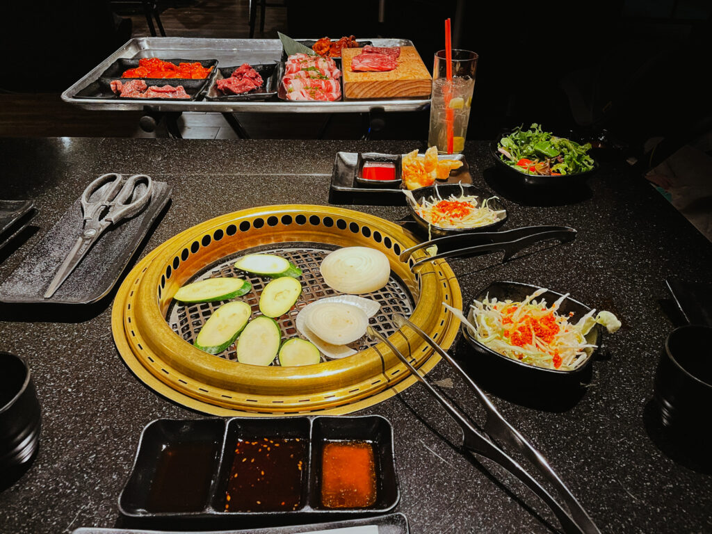 If youโve never had Japanese BBQ it is similar to Korean BBQ in which you order plates of uncooked meat and you cook it in front of you to your liking at the table. Their menu offers three all-you-can-eat options including Angus, Prime, and Kobe. Personally I always go for the Kobe option!